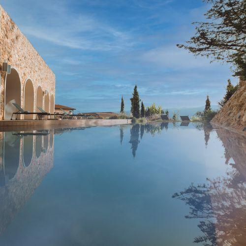 The prestigious Mitzpe HaHaim hotel, from the luxury hotel group of the Isrotel chain, overlooks a breathtaking rolling landscape, between Safed and Rosh Pina.